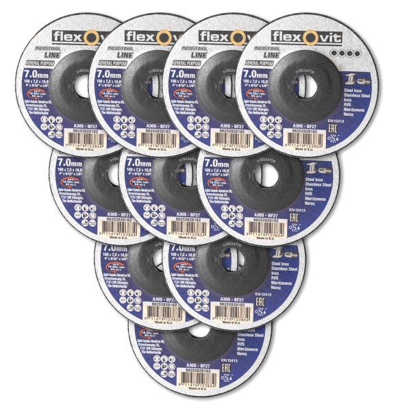 Schruppscheibe und Schleifscheibe 100 x 7 mm für Metall und Edelstahl im praktischen 10er Set