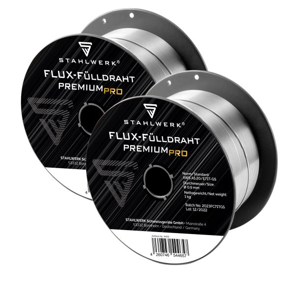 STAHLWERK Schweißdraht MIG MAG Premium Fülldraht E71T-GS Ø 0,9 mm 0,9 kg 2er Set