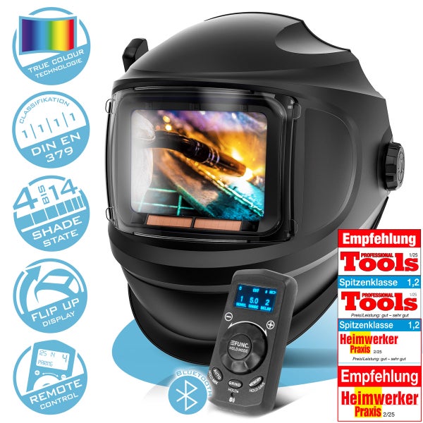 STAHLWERK Schweißhelm MASTER 3-in-1 mit Fernbedienung, klappbarem Visier