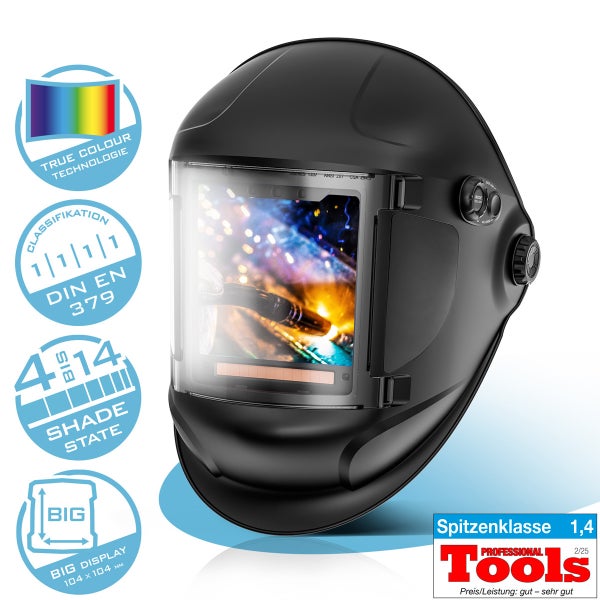 - Der 3-in-1 Automatik-Schweißhelm eignet sich mit den Optischen Klassen 1/1/1/1 ideal zum professionellen Schweißen, Plasmaschneiden sowie fürSchleif-, Trenn- und Sägearbeiten.