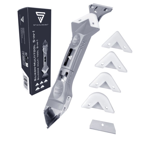- Das STAHLWERK 5-in1 Silikon-Fugenwerkzeug eignet sich zum professionellen Spachteln, Schneiden, Schaben, Reinigen und Abziehen von Silikon- oder Acryl-Fugen.