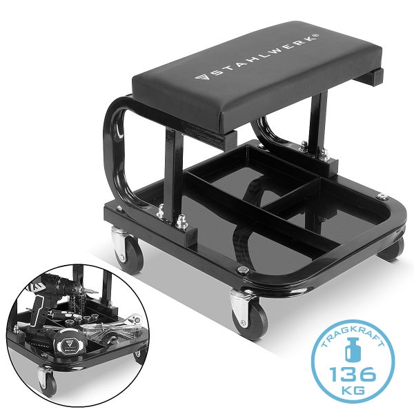 STAHLWERK Werkstatthocker WRS-35 ST Schwarz mit 136 kg Tragkraft Werkstattsitz