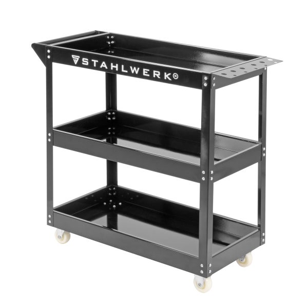 - Der STAHLWERK Werkstatt Rollwagen ist mit 3 geräumigen Ladeflächen ausgestattet und garantiert somit viel Raum für große und kleine Werkzeuge. Er kann insgesamt mit bis zu 200 kg belastet werden.
