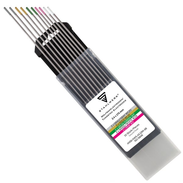 STAHLWERK Wolframelektroden Gold, Grau, Pink, Weiß, Grün 2,4 mm je 2 im 10er Set