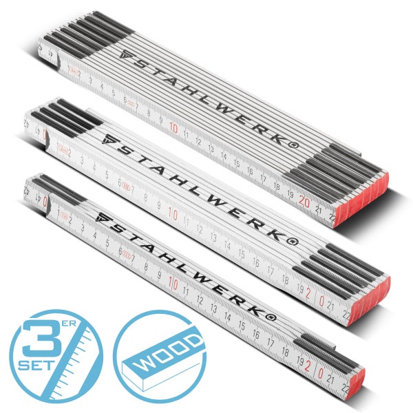 STAHLWERK Zollstock 3er Set 1 | 2 | 3 Meter präziser Holz-Gliedermaßstab