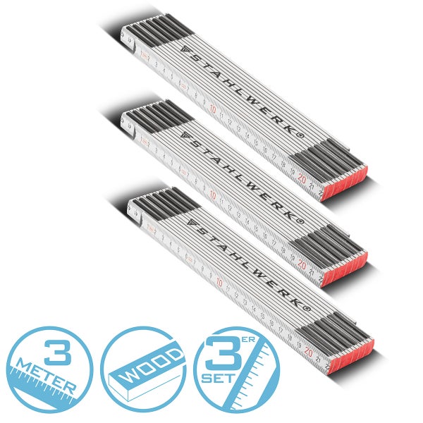 - 3 x STAHLWERK Holz-Zollstock 3 m