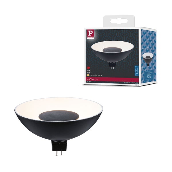 Diese warmweißen LED Reflektorlampe in Schwarz#Weiß mit einem GU5,3 Sockel ist der ideale Ersatz für alte Niedervolthalogenreflektoren. Durch die Innenverspiegelung werden die Lichtstrahlen gebündelt, so sorgt sie für fokussiertes Licht, welches gezielt in eine Richtung gelenkt wird. Dank ihrer Optik lässt sich die Reflektorlampe auch als dekoratives Leuchtmittel in Spotlights einsetzen.