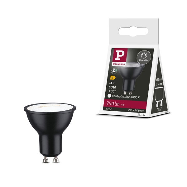 Der Reflektor erzeugt ein angenehmes und gleichmäßiges Licht, das sich durch seine 4000K auszeichnet. Mit einer Leistung von 8W und einem Nennlichtstrom von 750lm bietet er eine optimale Beleuchtungslösung. Der GU10-Reflektor ist in der Farbe Schwarz matt erhältlich und passt perfekt zu den RAL-Materialfarben des URail-Systems. Er eignet sich ideal für die Verwendung in URail Spots, die über eine GU10-Fassung verfügen. Dank seiner Dimmfunktion kann die Helligkeit des Leuchtmittels flexibel an individuelle Bedürfnisse angepasst werden - sei es für gemütliches Stimmungslicht oder für eine vollständige Ausleuchtung eines Raumes. Die Reflektorlampen sind speziell darauf ausgelegt, gerichtetes Licht in Pendelleuchten, Spots und Strahlern zu erzeugen. Durch gezieltes Anstrahlen können sie Bilder, Dekorationselemente oder ganze Wandflächen effektvoll inszenieren. Insgesamt bieten diese Reflektoren nicht nur hochwertiges Licht mit optimaler Helligkeit, sondern auch vielfältige Möglichkeiten zur Gestaltung von Räumen durch gezielte Akzentuierung. Die Paulmann LED-Lampen mit Eye friendly-Siegel bieten augenschonendes und komfortables Licht. Ob beim Arbeiten, Lesen oder Entspannen, die Lampen tragen zu besten Sehkomfort bei.