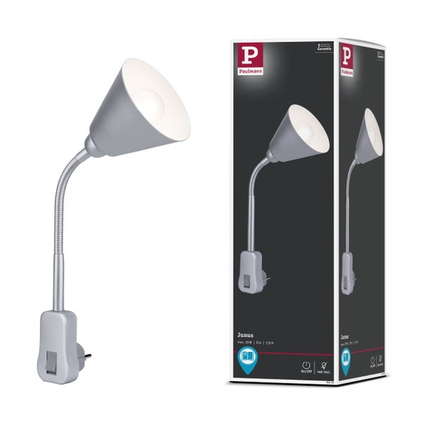 Die Steckerleuchte Junus in Weiß lässt sich ganz einfach in jede Steckdose stecken – so kann das Licht genau dorthin geholt werden, wo es gebraucht wird. Über den angebrachten Kippschalter lässt sich die Steckerlampe beliebig an- und ausschalten. Der Flexarm lässt sich ganz nach Bedarf ausrichten, damit ist eine ideale Beleuchtung garantiert. Je nach verwendetem Leuchtmittel, ist die Lampe dimmbar.