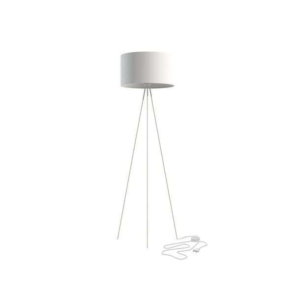 Stehlampe Dreibein Stoff Metall 156 cm Weiß E27 Fußschalter Modern Stehleuchte Wohnzimmer