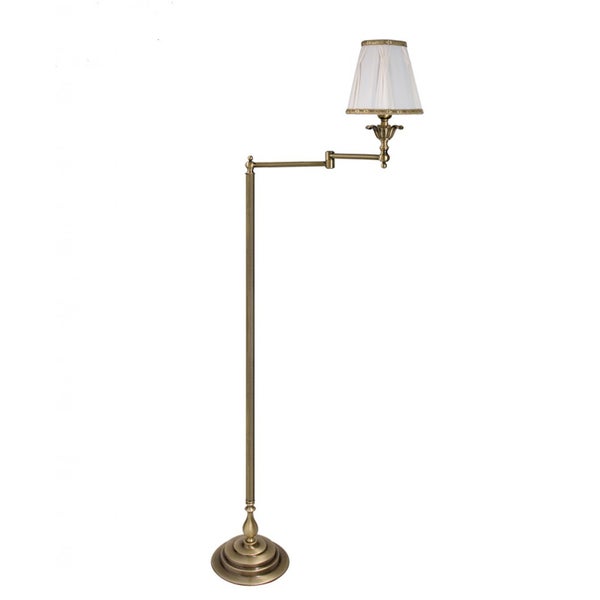 Stehlampe Gelenkarm 118 cm klein Messing massiv Stoff E14 in Bronze hell Weiß Klassisch Stehleuchte Wohnzimmer