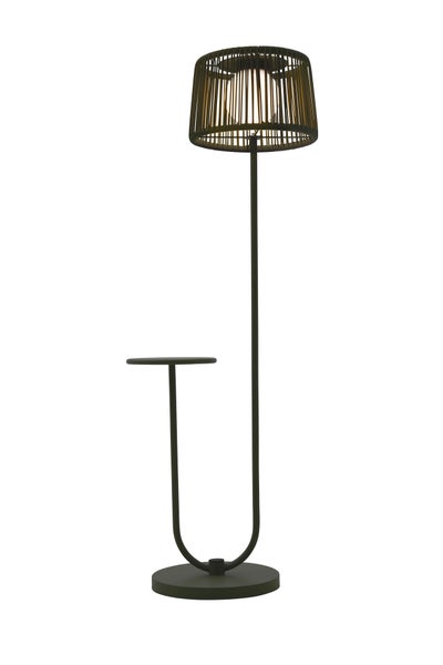Diese ausgefallene Stehlampe mit zusätzlichem Ablagetisch ist ein Highlight in jedem Außenbereich.