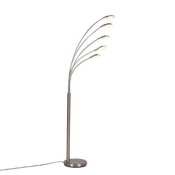 Die Stehleuchte Sixties Trento? Ein echter Blickfang für dein Zuhause! Sie ist in einem zeitlosen Stahl-Finish gehalten. Die Stehleuchte hat eine Gesamthöhe von 180 cm und eine Länge von 80 cm. Der Sockel hat einen Durchmesser von 28 cm. Im Lieferumfang ist ein Kabel mit einer maximalen Länge von 220 cm enthalten. Du kannst die Arme der Leuchte separat verstellen, was besonders beim Lesen sehr praktisch ist! Die Sixties Trento verfügt über eine fest integrierte LED-Beleuchtung mit 5 Lichtpunkten. Dieser Blickfang hat eine Lebensdauer von 20.000 Brennstunden. Die integrierte LED hat eine Leistung von 2700 Kelvin und 2500 Lumen: warmweißes Licht für dein Zuhause. Du kannst die Leuchte mit einem Touch-Dimmer am Gehäuse dimmen. So erzeugst du deine ganz persönliche Atmosphäre! Mit der Stehleuchte Sixties Trento schaffst du eine besonders gemütliche Atmosphäre in deinem Zuhause und rundest die Einrichtung jedes Raumes ab.