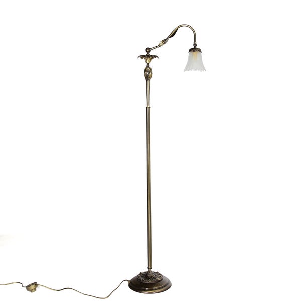 Stehleuchte Glas Echt-Messing schwenkbar 142 cm hoch in Bronze hell Weiß E14 Jugendstil Stehlampe