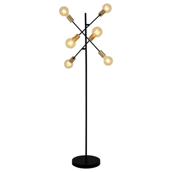 Diese Stehleuchte aus unserer MODO-Kollektion wird Sie begeistern! Stehleuchten sind wahre Multitalente: Sie können als schmückende Elemente fungieren, den Einrichtungsstil ergänzen oder auch als auffällige Design-Highlights dienen. Dank ihrer kompakten Stellfläche können sie auch in kleinen Räumen oder hinter Möbeln platziert werden, ohne dabei störend zu wirken. Eine außergewöhnlich Optik und die symmetrische Gestalt machen diese Lampe im Industrial Style zu einem unverzichtbaren Element für alle, die eine harmonische Einrichtung schätzen. Die Leuchte aus Metall in schwarz ist ein Hingucker in jedem Raum.. Das Gestell ist mattiert. Die Stehleuchte misst 49 cm in der Länge, 49 cm in der Breite/Tiefe und 150 cm in der Höhe. Somit hat die Leuchte einen Durchmesser von 49 cm. Die Stehleuchte verfügt über einen Druckschalter und einen Euro-Flachstecker. Bei einer Länge von 180 cm der Zuleitung, haben Sie einen großen Spielraum bei der Standortwahl der Leuchte. Mit dieser Stehleuchte erhalten Sie eine ästhetische Beleuchtungsmöglichkeit für Ihre Räumlichkeiten. Dank der E27 Fassung steht Ihne eine große Auswahl an Leuchtmitteln zur Verfügung. 6 der Fassungen sorgen für ausreichend Licht. Sie können das Leuchtmittel selber wechseln, das spart Zeit und Kosten. Diese Leuchte entspricht der Klasse 2. Für den Netzbetrieb dieses Geräts wird eine Netzspannung von 220-240V ~ 50Hz benötigt. Die Leuchte hat eine Gesamtleistung von 240 Watt. Mit unserer Stehleuchte verleihen Sie Ihrem Zuhause das perfekte Lichtambiente und sorgen für ein geschmackvolles Ambiente.