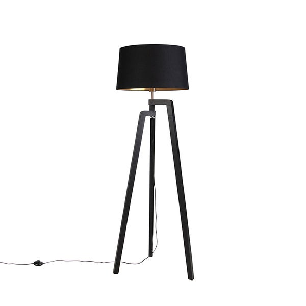 Stehleuchte Stativ mit Baumwollschirm schwarz mit Gold 50 cm - Puros