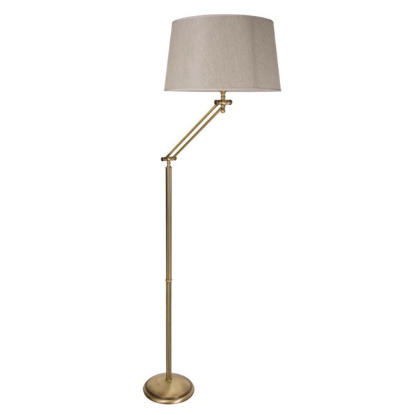 Stehleuchte Stoff Echt-Messing 179 cm in Bronze hell Beige E27 Klassisch Wohnzimmer Stehlampe