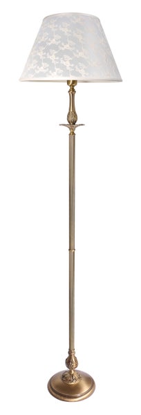Stehleuchte Stoff Messing massiv 143 cm in Bronze hell Weiß E27 Jugendstil Stehlampe