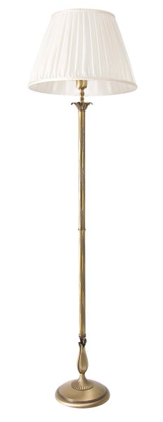Stehleuchte Wohnzimmer 149 cm Messing Stoff in Bronze hell Weiß für E27 Stehlampe