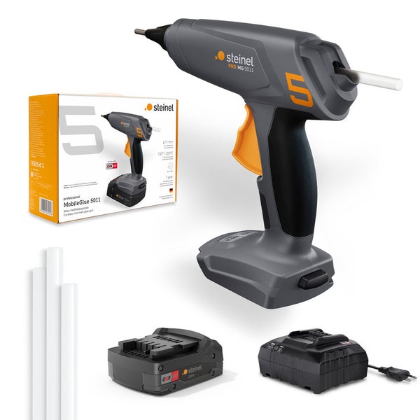 Steinel Akku Heißklebepistole MobileGlue 3011 Set, 2.0 Ah Metabo CAS Akku, startklar in 2 Min., kabellose Klebepistole