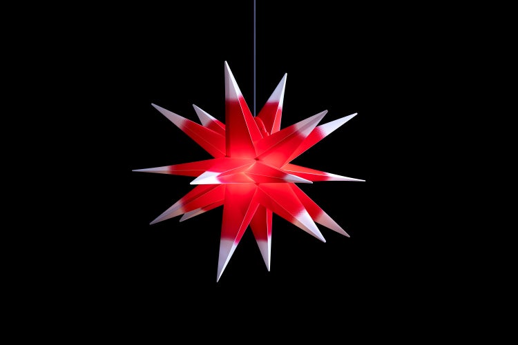 - Der Sterntaler Dekostern ist ein rot/weißer, 40 cm großer Faltstern mit 18 Zacken, ideal für deinen Außenbereich.