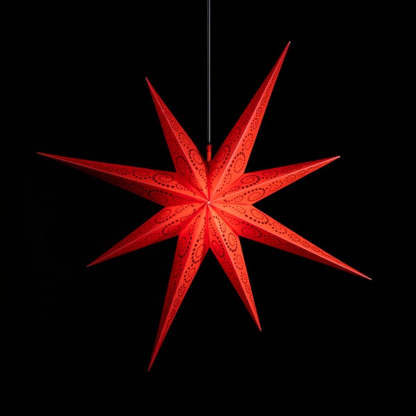 - Der Sterntaler Dekostern ist ein 75cm großer Faltstern mit 8 Zacken, rot/schwarz mit Glitter, perfekt für den Außenbereich.