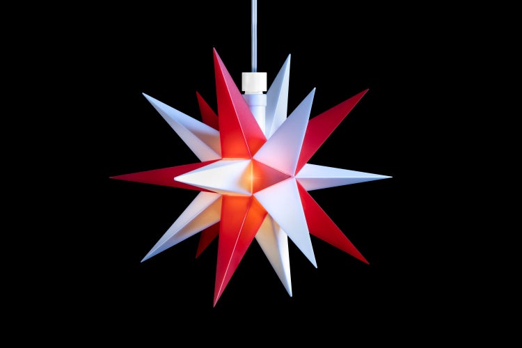 - Der Mini-Stern von Sterntaler ist ein 18-Zacker, weiß/rot, mit einem Durchmesser von 12 cm und Fernbedienung.