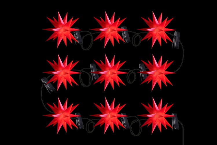 - Mini-Sternenkette von Sterntaler mit 9 roten Kunststoffsternen, je 12 cm Durchmesser, beleuchtet durch LED, für den Innen- und Außenbereich.