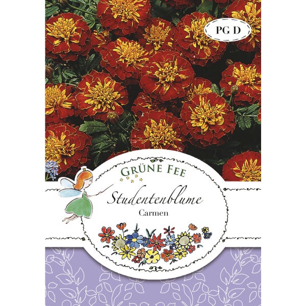 Einjährige, reich und langanhaltend blühende Sommerblumen mit dicht gefüllten Blüten aus rostroten Blütenblättern mit gelb-orange gerüschtem Rand für die Gruppenpflanzung in Beeten, Töpfen und Balkonkästen, die Pflanzen helfen gegen Nematoden (Wurzelälchen) im Boden, sie sollten vor Schnecken geschützt werden.