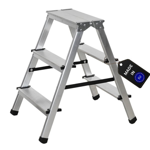 Stufenstehleiter ATLAS Beidseitig Begehbar 2 x 3 Stufen Arbeitshöhe 2,60 m Traglast 125 kg