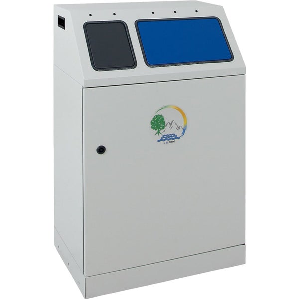 Hinweis: Diesen Artikel erhalten Sie als Speditionslieferung direkt vom Hersteller. Bitte geben Sie uns unbedingt eine Telefonnummer für die Spedition an. Des Weiteren kann dieser Artikel NUR innerhalb Deutschlands versendet werden. (This item can ONLY be shipped within Germany) Kompakter 2-fach Sammler, aus vollständig verzinktem Qualitätsstahlblech gefertigt und hochwertig strukturiert pulverbeschichtet. Im Behälterinnern sorgen zwei Innenbehälter aus ebenfalls verzinktem Stahlblech für optimale Abfallaufnahme. Das Fassungsvermögen beträgt 1x30 und 1x60 Liter. Die Abfalltüten werden durch eine frontseitig eingelassene und per Vierkantschloss verschließbare Flügeltüre entnommen (Vierkantschlüssel wird mitgeliefert). Die selbstschließenden Einwurfklappen wirken feuer- und geruchshemmend. Frontseitig sorgen 2 Stellfüße für den Ausgleich bei Unebenheiten. Der Behälter kann mit dem Rollensatz Art.-Nr. 5407000 auch nachträglich zur fahrbaren Variante umgerüstet werden. Dann beträgt die Gesamthöhe 1020 mm. Der Behälter wird vollständig in Deutschland gefertigt und wird in einer TÜV-zertifizierten Produktionsstätte hergestellt. Der Hersteller gewährt eine Garantie von 5 Jahren. Farbgebung Korpus: lichtgrau RAL 7035, Farbgebung Einwurfklappen: anthrazitgrau RAL 7016, enzianblau RAL 5010.