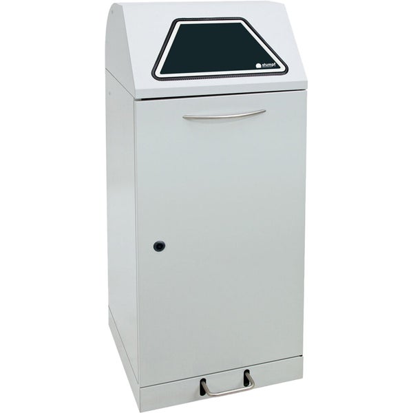 Hinweis: Diesen Artikel erhalten Sie als Speditionslieferung direkt vom Hersteller. Bitte geben Sie uns unbedingt eine Telefonnummer für die Spedition an. Des Weiteren kann dieser Artikel NUR innerhalb Deutschlands versendet werden. (This item can ONLY be shipped within Germany) Der Sammler ist aus vollständig verzinktem Qualitätsstahlblech gefertigt und hochwertig strukturiert pulverbeschichtet. Im Behälterinnern sorgt ein Innenbehälter aus ebenfalls verzinktem Stahlblech für optimale Abfallaufnahme. Das Fassungsvermögen beträgt 120 Liter. Der Innenbehälter wird durch eine frontseitig eingelassene und per Vierkantschloss verschließbare Flügeltüre entnommen (Vierkantschlüssel wird mitgeliefert). Einwurfklappe öffnet per Trethebel und schließt mittels Dämpfer verzögert und geräuschlos. Zur farblichen Kennzeichnung der Einwurfklappe liegt dem Sammler ein Set mit 4 ProPads (= protect-pads, hochrobust, selbstklebend) in den Farben blau, gelb, grün und anthrazit bei. So entscheidet der Anwender selbst, welche Kennzeichnungsfarbe der Sammler tragen soll. Frontseitig sorgen 2 Stellfüße für den Ausgleich bei Unebenheiten. Der Behälter kann mit dem Rollensatz Art.-Nr. 5407000 auch nachträglich zur fahrbaren Variante umgerüstet werden. Dann beträgt die Gesamthöhe 1200 mm. Der Behälter wird vollständig in Deutschland gefertigt und ist TÜV/GS geprüft. Der Hersteller gewährt eine Garantie von 5 Jahren. Außerdem ist der Behälter zertifiziert selbstlöschend und als nicht brennbar eingestuft (gem. DIN 4102, Brandschutzklasse A1). Farbgebung Korpus: lichtgrau RAL 7035, Farbgebung Einwurfklappe: ProPads