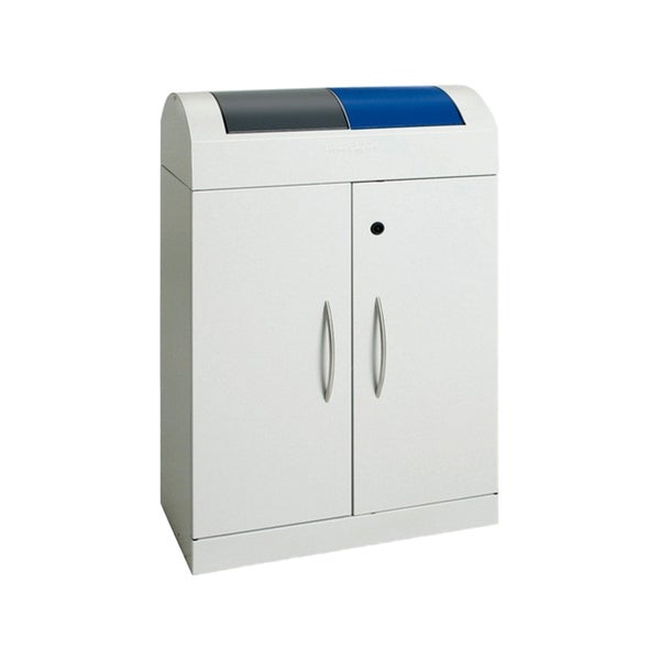 Hinweis: Diesen Artikel erhalten Sie als Speditionslieferung direkt vom Hersteller. Bitte geben Sie uns unbedingt eine Telefonnummer für die Spedition an. Des Weiteren kann dieser Artikel NUR innerhalb Deutschlands versendet werden. (This item can ONLY be shipped within Germany) Formschöner Schranksammler, aus vollständig verzinktem Qualitätsstahlblech gefertigt und hochwertig strukturiert pulverbeschichtet. Im Behälterinnern sorgen zwei Innenbehälter aus ebenfalls verzinktem Stahlblech für optimale Abfallaufnahme. Das Fassungsvermögen beträgt 2x45 Liter. Die Abfalltüten werden durch eine frontseitig eingelassene und per Vierkantschloss verschließbare Flügeltüre entnommen (Vierkantschlüssel wird mitgeliefert). Die selbstschließenden Pendelklappen wirken feuer- und geruchshemmend. Mit zwei ergonomischen Griffen aus Edelstahl an den Flügeltüren. Frontseitig sorgen 2 Stellfüße für den Ausgleich bei Unebenheiten. Der Behälter wird vollständig in Deutschland gefertigt und wird in einer TÜV-zertifizierten Produktionsstätte hergestellt. Der Hersteller gewährt eine Garantie von 5 Jahren. Farbgebung Korpus: lichtgrau RAL 7035, Farbgebung Pendelklappen: anthrazitgrau RAL 7016, enzianblau RAL 5010.