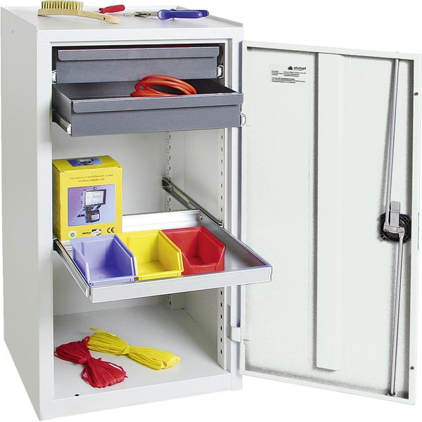 - 1x Stumpf Werkzeug- und Materialschrank Serie 3000 lichtgrau + 2 Schubladen 100 mm + 1 Auszugsboden
