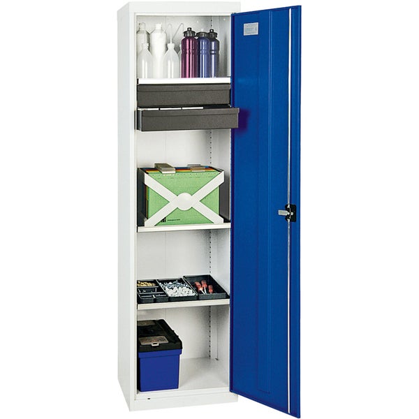 - 1x Stumpf Werkzeug- und Materialschrank Serie 3000 lichtgrau / enzianblau + 2 Schubladen 100 mm + 3 Auszugsböden