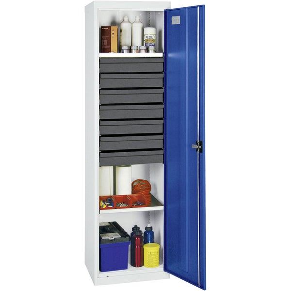 - 1x Stumpf Werkzeug- und Materialschrank Serie 3000 lichtgrau / enzianblau + 7 Schubladen 100 mm + 2 Auszugsböden