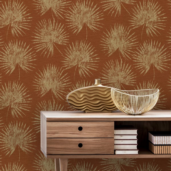 Sublime – Vliestapete – Runde Palmenblätter – Orange – 10 m x 52 cm