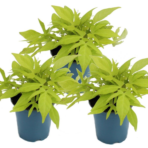 Süßkartoffel - Beet- und Balkonpflanze - Ipomoea batatas - 12cm - Set mit 3 Pflanzen - hellgrün
