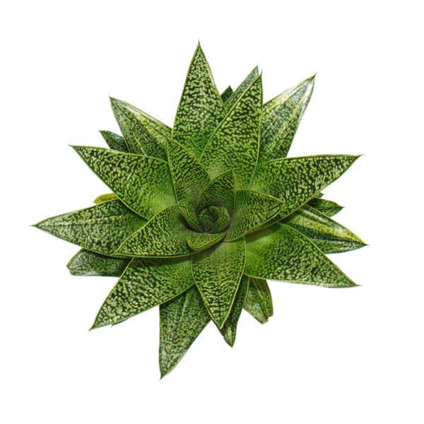 Diese Gasteria gehört zu den Affodilgewächsen und ist eine sukkulente Pflanze. In Ihren fleischigen Blättern speichert sie Wasser und Nährstoffe, um die langen Trockenphasen in ihrer Südafrikanischen Heimat zu überdauern.