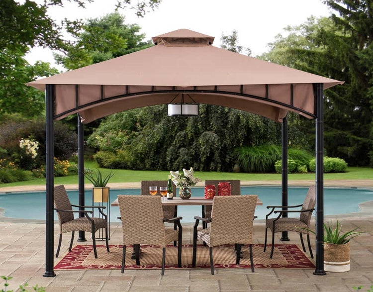 Erschaffen Sie Ihr persönliches Wohnzimmer im Freien und gestalten Sie Ihre Oase im Grünen, um den Tag in entspannter Atmosphäre ausklingen zu lassen. Der großzügige Pavillon von Sunjoy mit einer Größe von 340x340cm hilft Ihnen dabei, Ihren Rückzugsort zu schützen. Genießen Sie sonnengeschützte Momente unter dem zweistufigen, belüfteten Verdeck, das von einem rostbeständigen Stahlrahmen getragen wird. Für den finalen Design Touch können Sie einen Kronleuchter an den eingearbeiteten Deckenhaken befestigen und damit eine besonders gemütliche Atmosphäre schaffen. Nutzen Sie das Netz, um lästige Mücken und Ungeziefer fernzuhalten. Die leicht verständliche Aufbauanleitung sorgt dafür, dass Sie sich im Handumdrehen in Ihrem neuen Lieblingswohnbereich im Freien entspannen können.