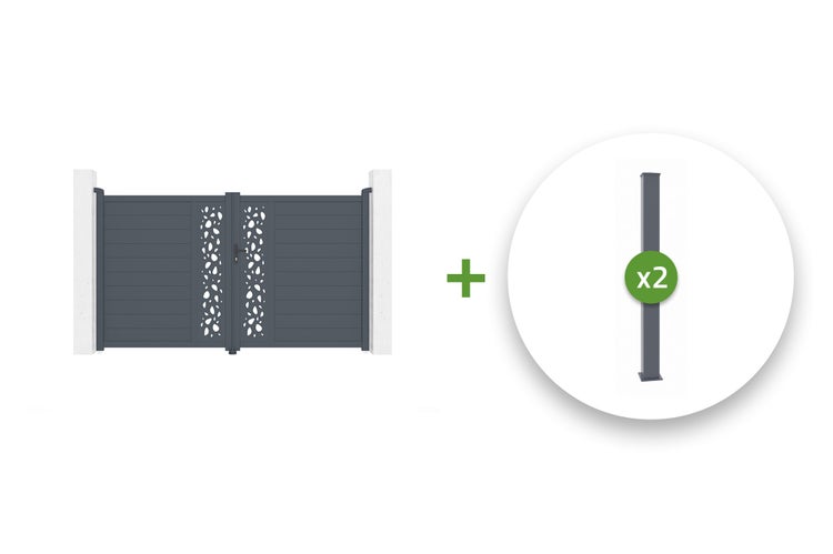 Die Pfosten sind in unseren Kits nicht enthalten, da sie für die Installation Ihres Flügeltors nicht unbedingt erforderlich sind, falls Ihr Außenbereich bereits Pfeiler/Pfosten hat.
