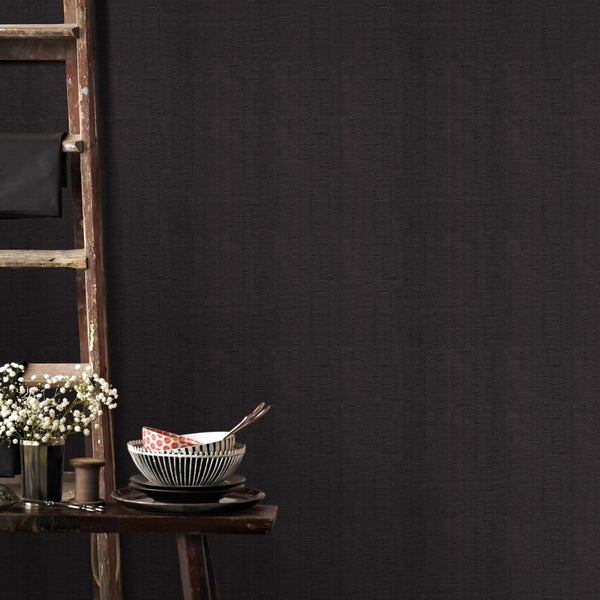 Diese Vliestapete namens Glenn ist eine tiefdunkle Tapete mit einem subtilen Textilmuster darin.