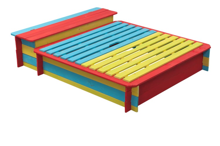 Dieser farbenfrohe Jade-Sandkasten von SwingKing ist praktisch und besticht durch seine verspielte und farbenfrohe Optik. Er misst 150 x 120 x 25/35 cm und besteht aus FSC-zertifiziertem Holz aus nachhaltiger Forstwirtschaft. Das Holz ist kesseldruckimprägniert und benötigt daher keine weitere Behandlung. Die Holzlamellentüren schützen den Sandkasten, wenn Ihre Kinder nicht darin spielen.