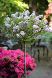 Dieses Duftflieder Stämmchen ist in ein Ziergehölz mit einer sehr buschigen Krone. In den Monaten Mai und Juni zeigt es seine zahlreichen, angenehm duftenden, hell-lila Blütenrispen. Ein Blickfang in jedem Garten.
