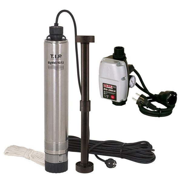 T.I.P. BigWell 90/53 + Elektronisches Kontrollsystem - Brunnenpumpe - 5.400 L/Std. - 900W - Förderhöhe 53 m - Inox - Tauchdruckpumpe