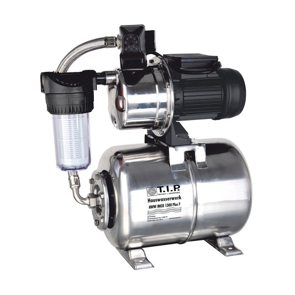 T.I.P. HWW INOX 1300 PLUS F Hauswasserwerk - 4.350 L/Std. - 1200W - Förderhöhe 50 m - Rostfreier Stahl - Komplettes Startpaket - Gartenpumpe