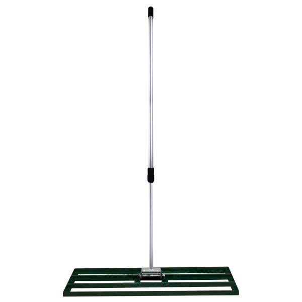 Die 100 cm lange Bodenplatte ist aus robustem, verzinktem Stahl gefertigt und in einem schönen Grün pulverbeschichtet, das nicht nur strapazierfähig ist, sondern auch wunderbar zum Außenbereich passt. Zusammen mit dem ausziehbaren Griff aus Aluminium ist der Nivellierer extrem robust und dennoch superleicht, um ein einfaches Manövrieren zu ermöglichen.