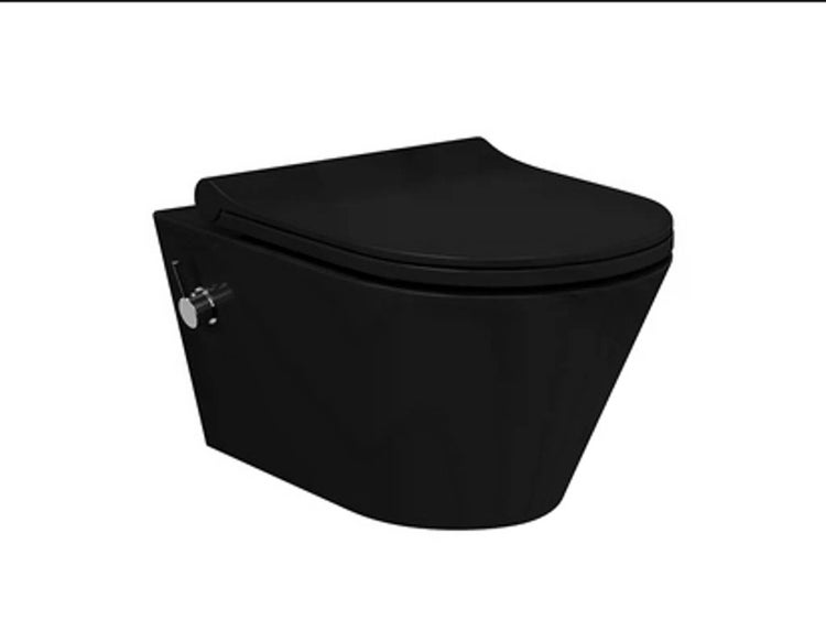 Taharet Dusch Wc kalt Anschluss,Schwarz matt mit Intergrierter Armatur mit Soft Close Wc sitz