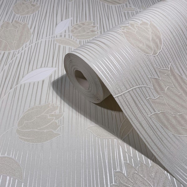 Tapete Weiß Floral Klassisch für Wohnzimmer Schlafzimmer MADE IN GERMANY 10,05 x 0,53m