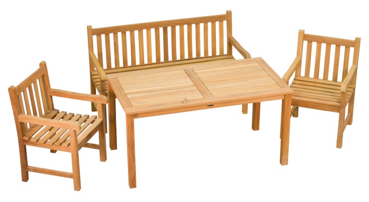 Teak Sitzgruppe 1 Teakbank 150 cm 2 Teak Sessel 1 Teak Tisch 150 x 80 cm im Set